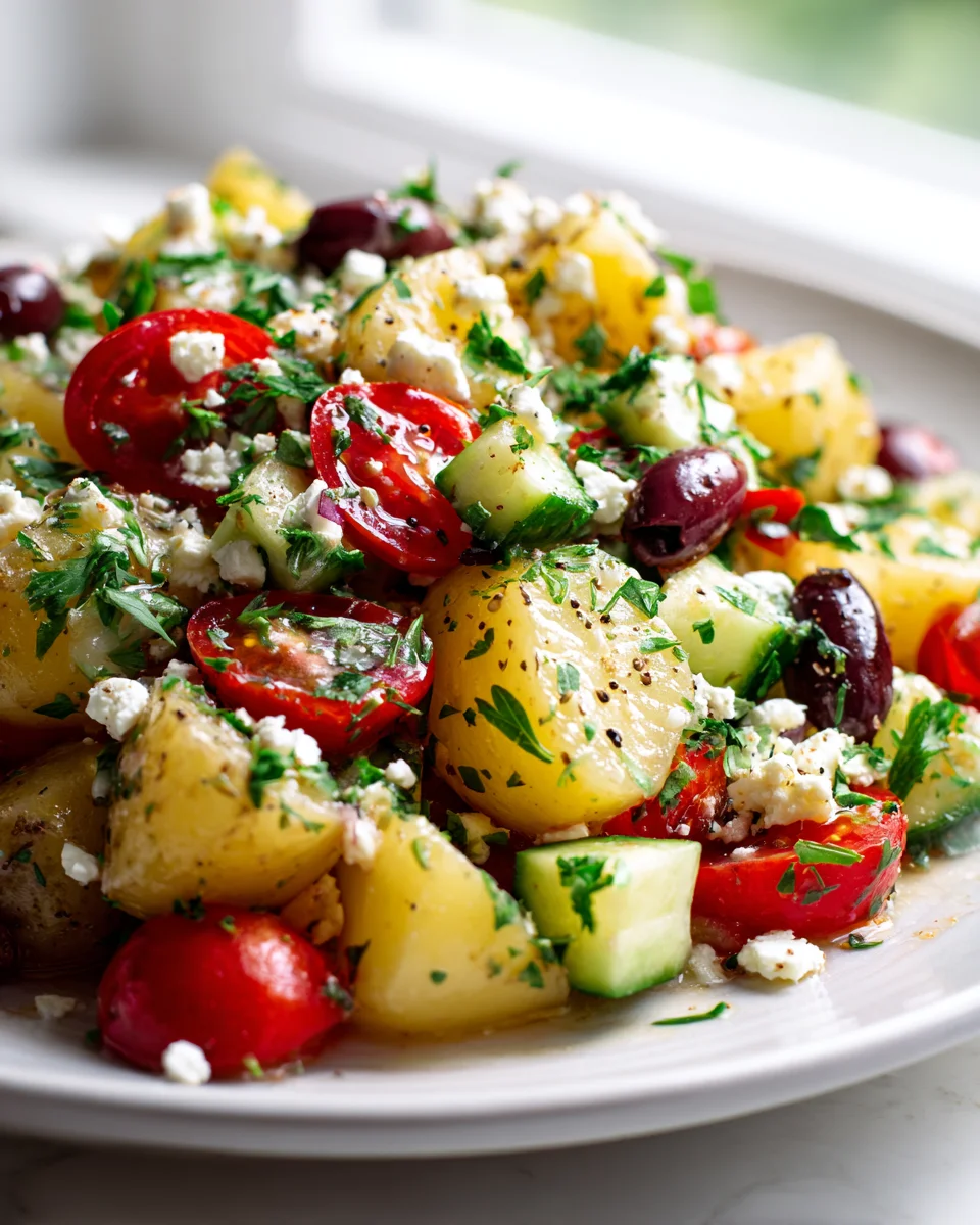 Vibrant Greek Potato Salad with Red Grape Juice Vinaigrette