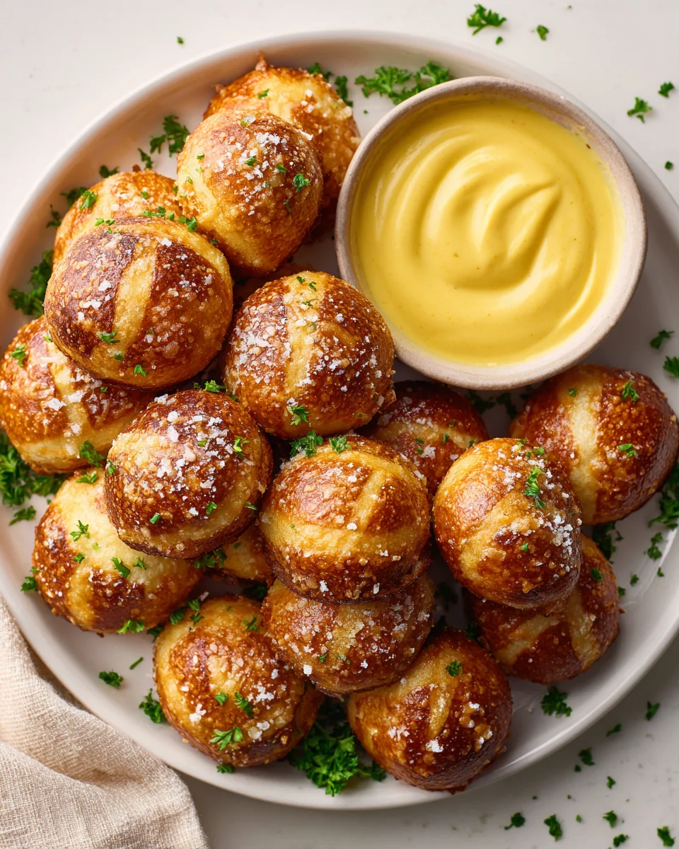 Spicy Parmesan Pretzel Bites with Zesty Mustard Dip