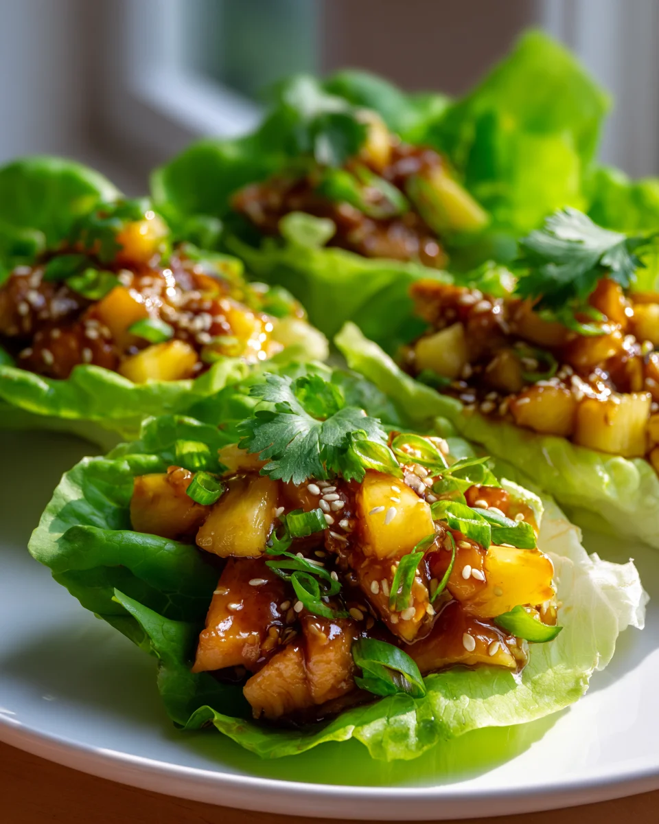 Sweet & Tangy Teriyaki Pineapple Chicken Lettuce Wraps