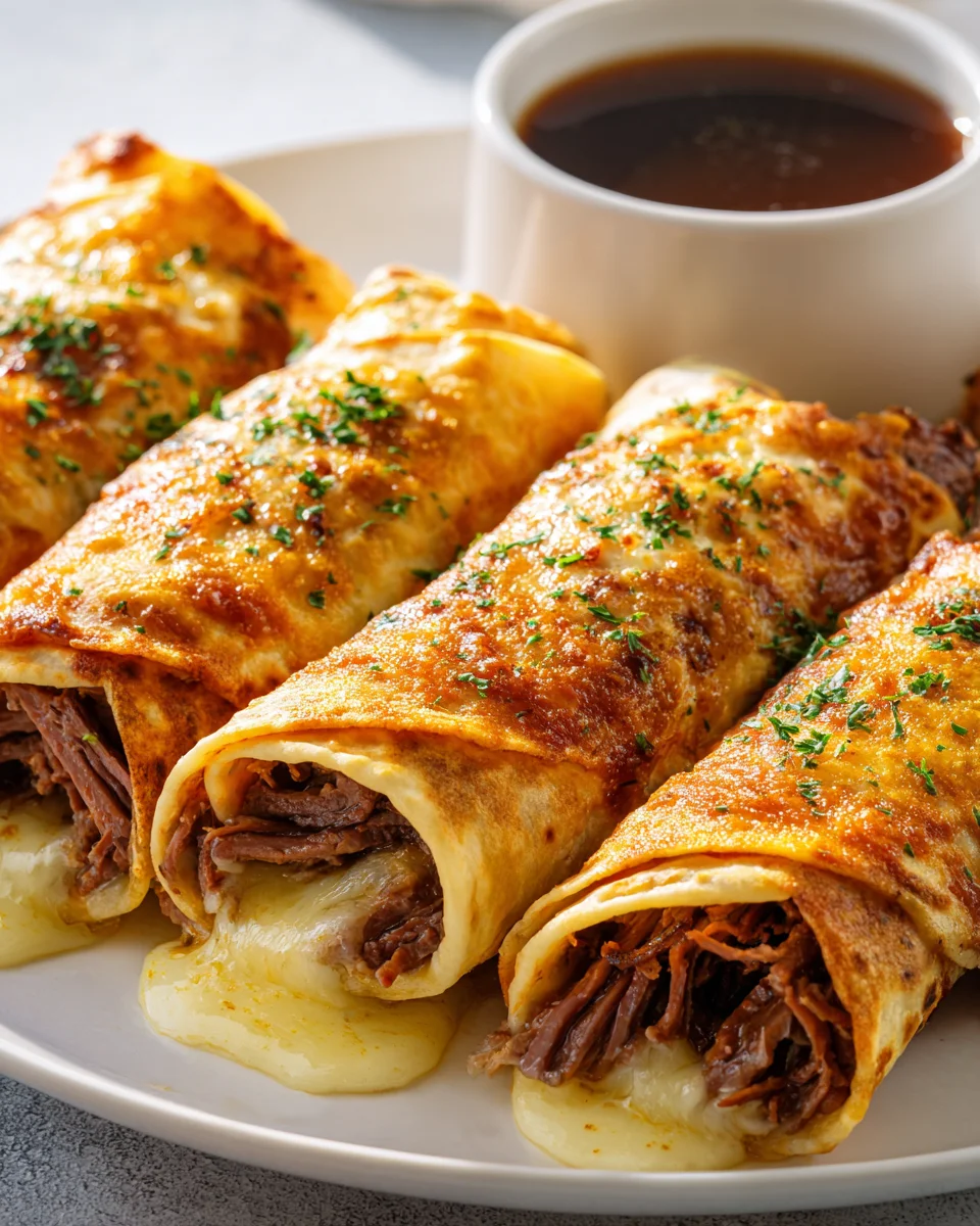 French Dip Roll Ups: Cheesy Beef Tortilla Recipe