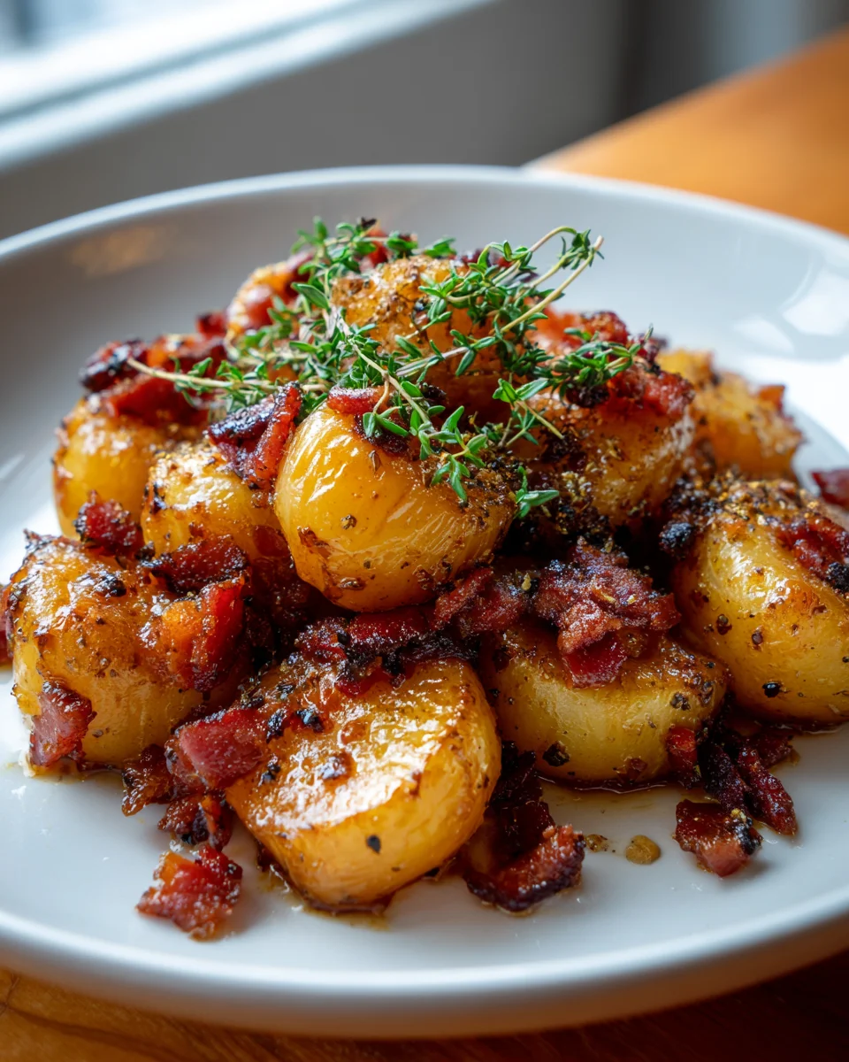 Sweet & Savory: Honey Glazed Shallots with Crispy Beef Bacon