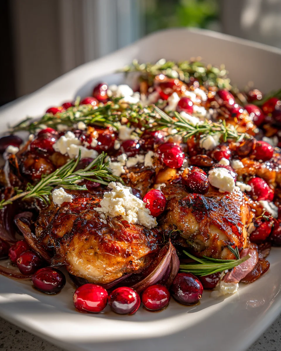 Easy Feta Topped Honey Cranberry Chicken Tray Bake