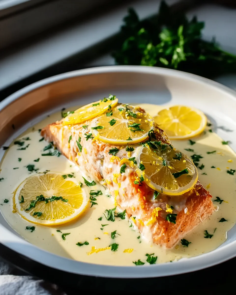 Baked Salmon with Lemon Butter Cream Sauce Recipe Delight