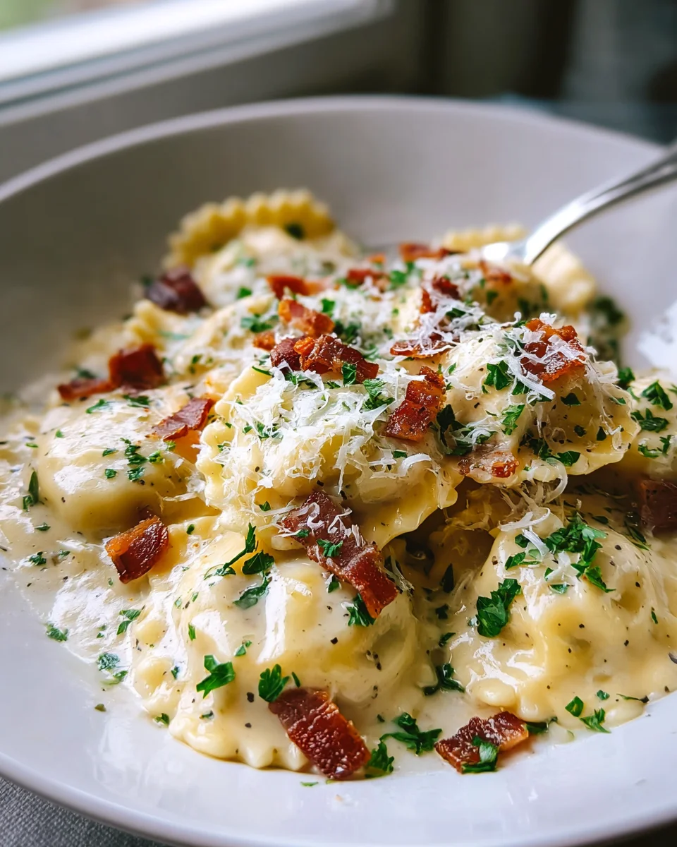 Delicious Olive Garden Ravioli Carbonara with Beef Delight!