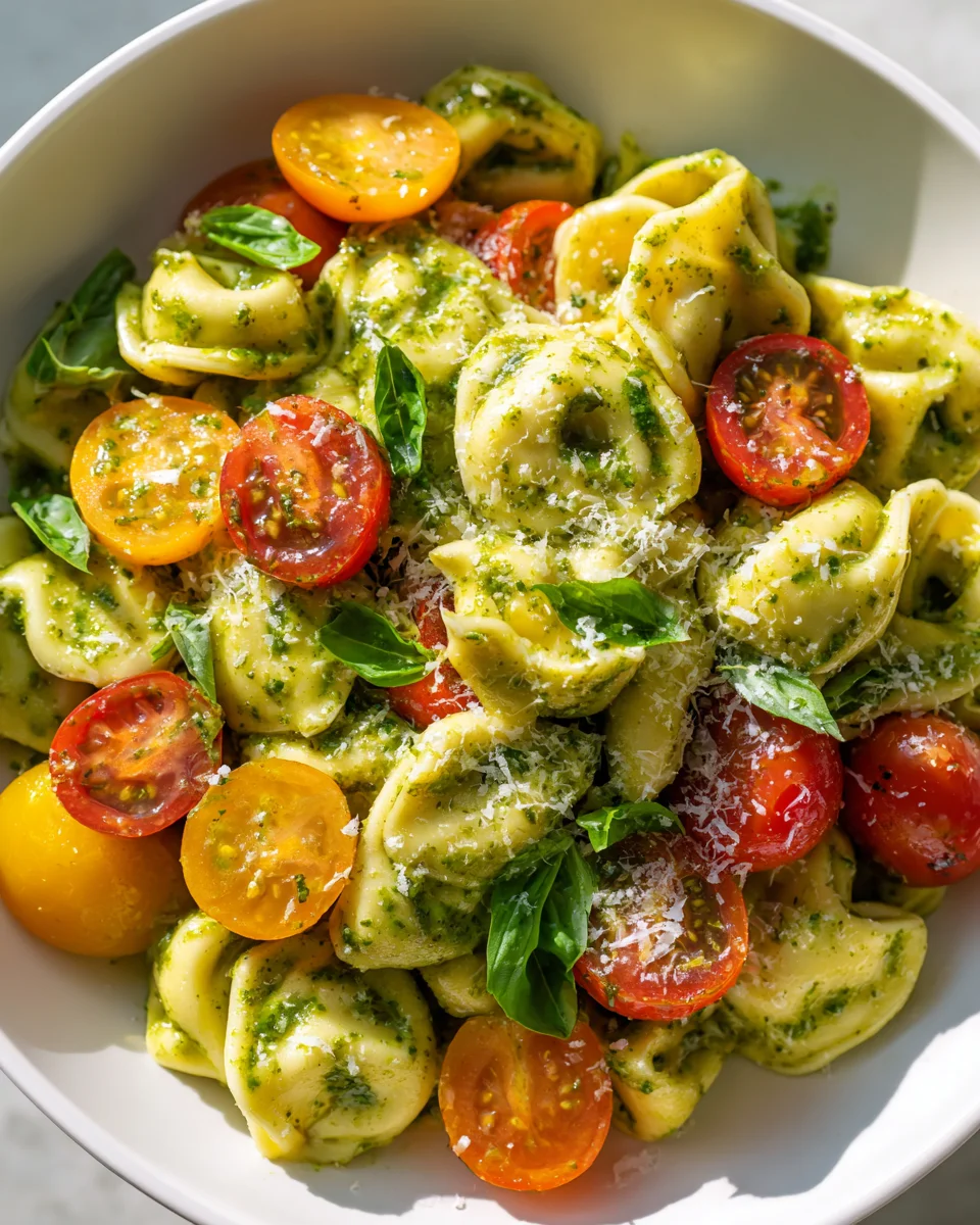 Delicious Pesto Tortellini Salad with Cherry Tomatoes