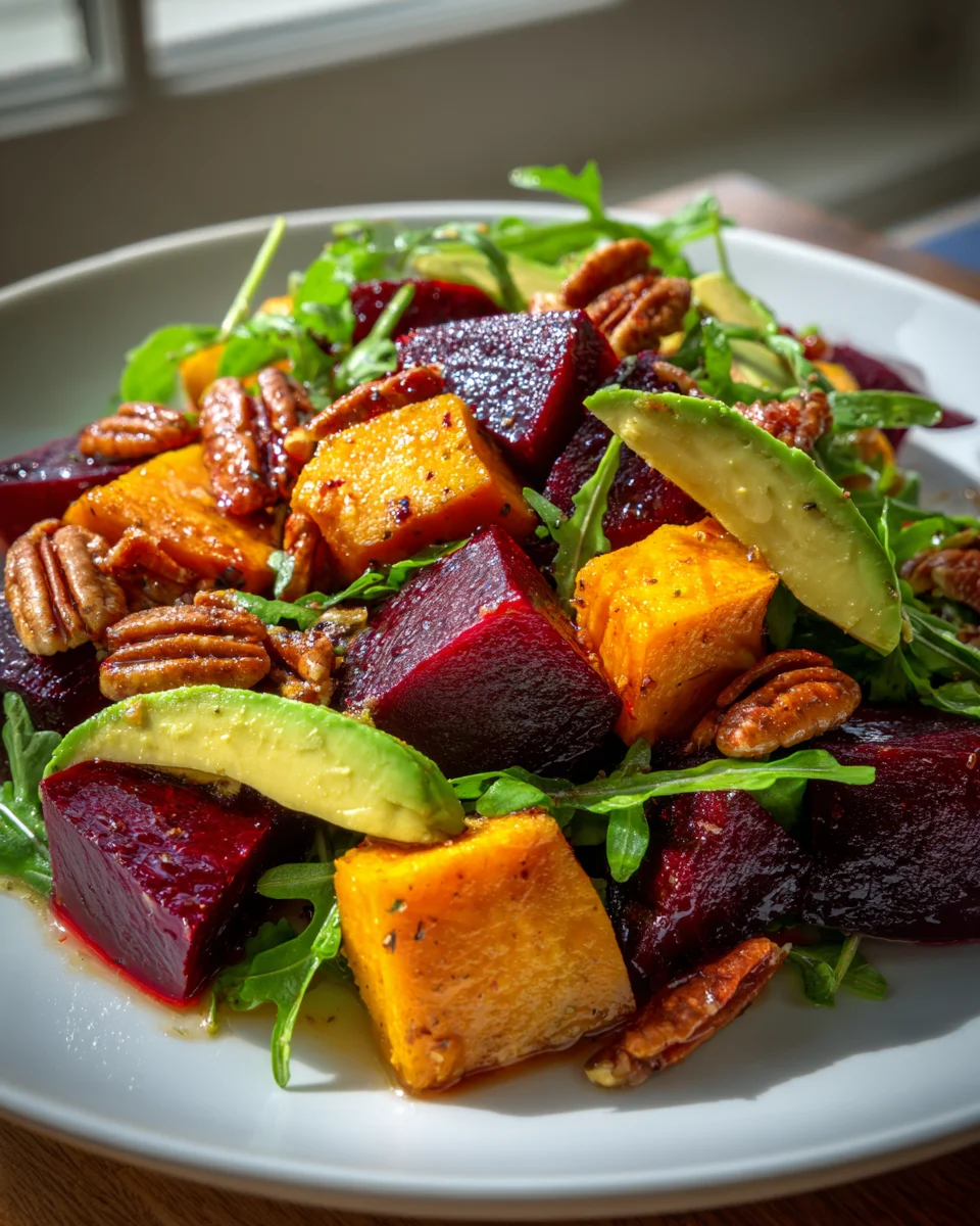 Roasted Beet, Sweet Potato, Avocado Salad & Candied Pecans