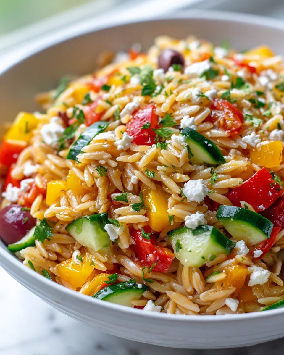 Delicious Mediterranean Orzo Summer Pasta Salad with Feta