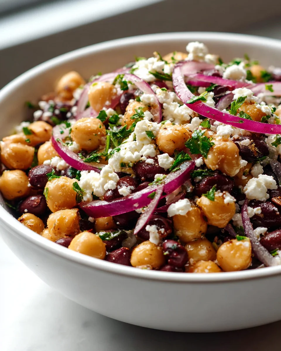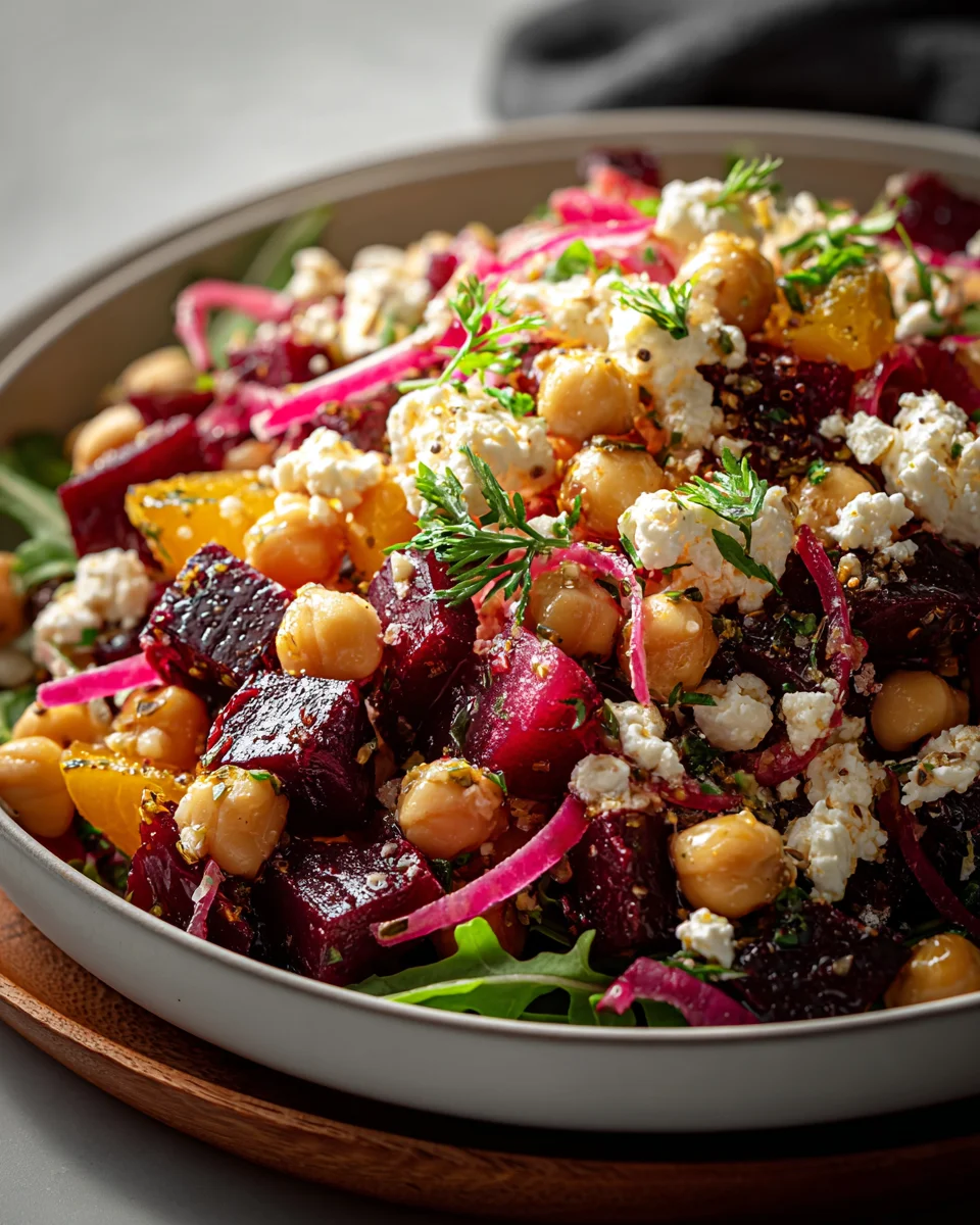 Zesty Chickpea Beet Feta Salad with Lemon Garlic Dressing