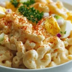 Whether you’re preparing for a festive family gathering, a casual potluck, or simply looking to add some wow-factor to your weeknight meal, this Deviled Egg Macaroni Salad is absolutely a must-try. I’m confident that once you taste its comforting and distinctive flavors, it will quickly become a cherished favorite in your recipe collection. Enjoy every delicious bite!