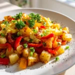 This Air Fryer Breakfast Potato Hash combines crispy, golden potatoes with vibrant veggies and hearty beef, all cooked to perfection in the air fryer. It’s a healthier twist on a classic breakfast favorite that’s bursting with flavor and color.