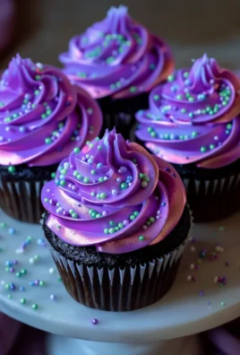 While these captivating cupcakes don’t hail from centuries-old culinary traditions, they are born from a desire to transform ordinary moments into something truly magical. They represent a modern celebration of beauty and indulgence, perfect for those special occasions or simply to add a touch of enchantment to an evening. People adore this dish not only for its striking visual appeal – that unique, subtle ‘glow’ is undeniably mesmerizing – but also for its decadent taste and incredibly moist texture. The deep, velvety cocoa base provides a satisfying richness, beautifully complemented by a cloud-like, subtly sweet frosting that melts delicately on the tongue. Creating these Midnight Glow Cupcakes offers a delightful experience, yielding a dessert that is both stunningly elegant and deeply comforting, promising to leave a lasting impression on everyone who enjoys them.