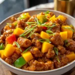 - Add Mango: Dice the fresh mango and add it to the pan with the veggies. Cook for an additional 2-3 minutes to allow the mango to warm through and release its juices.