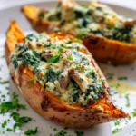 Discover a wholesome and satisfying meal with these Creamy Mushroom & Spinach Stuffed Sweet Potatoes. Enjoy the perfect balance of sweet and savory flavors in a comforting dish.
