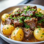 - Transfer the beef and potatoes to a serving platter. Spoon extra sauce over the top, sprinkle with fresh parsley, and serve warm. Enjoy the comforting aroma that fills your home!