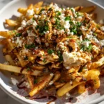 My version of Greek Chicken Loaded Fries is a feast for the senses. Imagine perfectly crispy fries, golden and inviting, topped with succulent marinated chicken that’s been grilled to perfection. The dish is drenched in a velvety garlic sauce that dances between creamy and tangy, while crumbles of feta add a delightful saltiness. Fresh herbs sprinkled on top bring a burst of color and a hint of brightness, making it not just delicious but visually stunning too.