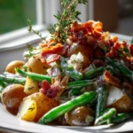 What makes this recipe so special, you ask? Well, it takes the humble, comforting combination of green beans and potatoes and elevates it to something truly extraordinary. We’re talking tender green beans and creamy potatoes, all lovingly coated in a rich, tangy ranch seasoning that delivers a burst of flavor in every bite. But wait, there’s more! The secret weapon here is the savory, crispy beef bacon that weaves its way through the entire dish, adding an irresistible smoky, salty crunch that ties everything together perfectly. It’s a complete, hearty meal that feels both wholesome and incredibly indulgent at the same time.