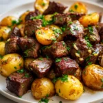 There’s something incredibly satisfying about a meal that’s both hearty and bursting with flavor, yet deceptively simple to prepare. That’s exactly what my Garlic Steak Bites and Potatoes recipe delivers! It’s a fantastic one-pan (or one-pan-and-sheet-pan) meal that’s perfect for a busy weeknight but feels special enough for a weekend dinner. Imagine tender, juicy steak bites infused with rich garlic butter, paired with perfectly seasoned, crispy roasted potatoes. It’s a complete meal in itself, and I promise you, it’s going to become a new favorite in your kitchen.