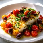 Let me introduce you to a dish that has quickly become a favorite in my kitchen: Lemon Garlic Baked Cod With Olives And Tomatoes. This delightful meal brings together the fresh, vibrant flavors of the sea with the zesty brightness of lemon and the savory goodness of garlic. What truly sets this recipe apart is the addition of briny olives and juicy tomatoes, which create a harmony of tastes that dance on your palate.