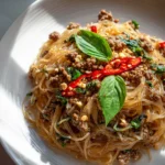 Experience a flavor explosion with this Spicy Thai Basil Ground Beef Rice Noodles dish that combines savory ground beef and aromatic Thai basil with chewy rice noodles. Perfect for a quick weeknight dinner, this recipe delivers restaurant-quality flavors right in your kitchen.