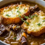 Imagine gathering around the table on a chilly evening, the enticing aroma wafting through the air, drawing everyone in. This soup not only warms the soul but also brings people together, making it perfect for family dinners or intimate gatherings with friends. You’ll find that each spoonful is a delightful balance of hearty meat, sweet onions, and a hint of herbaceous goodness, all topped off with that irresistible, gooey cheese. Trust me, once you try this recipe, it will become a staple in your home, bringing joy and comfort to every occasion!