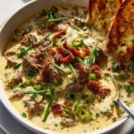 Get ready for a truly comforting and flavorful meal! Here’s how I bring my One Pot Philly Cheesesteak Soup with Beef Bacon and Cheesy Toast to life, all in one glorious pot: